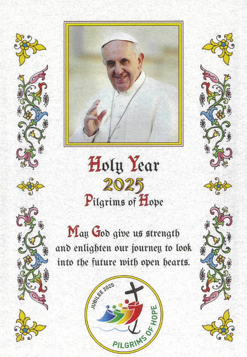Pope Francis has announced that 2025 will be a Jubilee Year for the international Church. This celebration occurs every 25 years. The theme for the 2025 year will be “Pilgrims of Hope”. It is designed to be a year of hope for a world suffering the impacts of war, the on-going effects of COVID -19 pandemic and the climate crisis. The Year of Hope will commence on 24 December with the opening of the Holy Door in St. Peter’s Basilica, Rome.